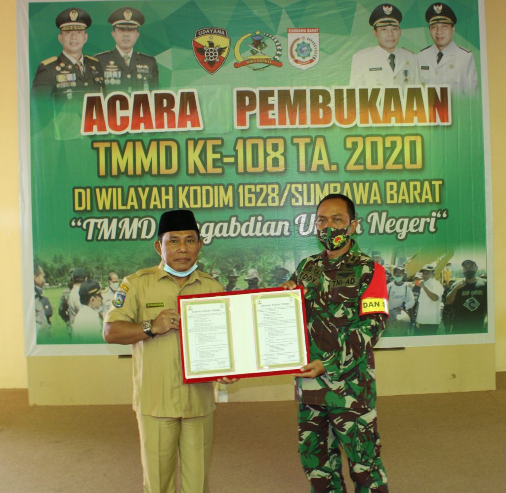 Bupati mengharapkan, usai TMMD dilaksanakan, nantinya akan ada kegiatan Bakti TNI-Polri. Wakil Ketua DPRD KSB, Abidin Nasar, S.T pun diminta dukungannya bersama anggota dewan untuk menyiapkan anggaran di APBDP 2020. Bakti tersebut ditujukan untuk membersihkan dan memperbaiki drainase (selokan) di Kota Taliwang. Diharapkan kegiatan dapat diselesaikan sebelum musim hujan nanti sehingga tidak ada masalah genangan yang disebabkan gangguan drainase. Kegiatan Pembukaan TMMD ditutup dengan penandatangan dan serah terima berita acara program TMMD ke-108 dari Bupati kepada Dandim 1628/Sumbawa Barat selaku Dansatgas TMMD ke-108 di wilayah KSB.