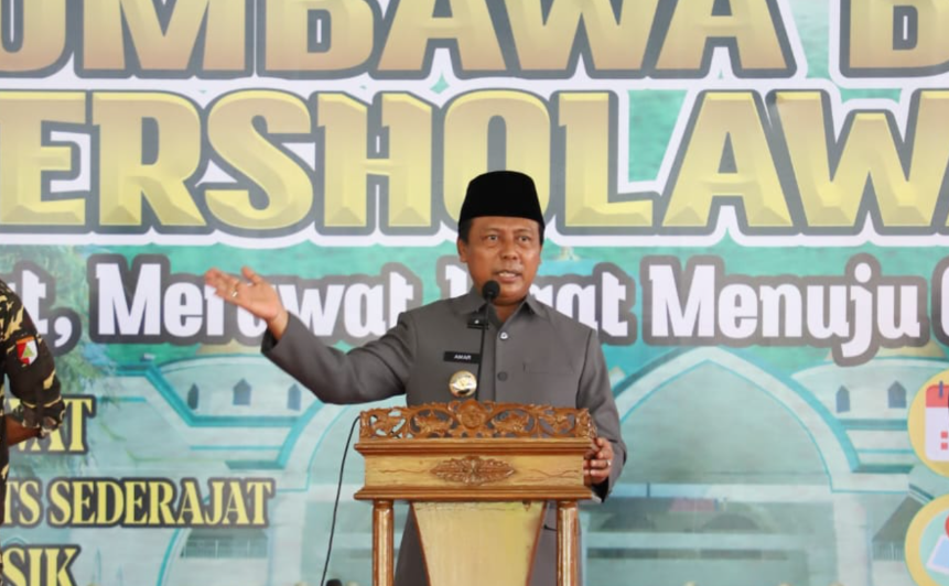 Taliwang, 24 November 2025 – Bupati Sumbawa Barat H. Amar Nurmansyah, S.T., M.Si. menghadiri sekaligus membuka Lomba Sumbawa Barat bershalawat tingkat SD/MI Sederajat dan SMP/MTs Sederajat dan Barzanji Klasik Tingkat Kabupaten Sumbawa Barat ke III yang merupakan bagian dari perayaan hari lahir ke-22 Kabupaten Sumbawa Barat. Acar tersebut dihadiri pula oleh Wakil Bupati Sumbawa Barat Hj. Hanipah, S.Pt., M.M.Inov., Ketua PCNU Kabupaten Sumbawa Barat Dr. Ir. H. W Musyafirin, M.M., Rais Syuriah PCNU Sumbawa Barat Dea Guru H. Zulkifli Daud, Jajaran Forkopimda, Ketua Pimpinan Pondok Pesantren, Camat serta guru dari kecamatan dan sekolah se Kabupaten Sumbawa Barat.