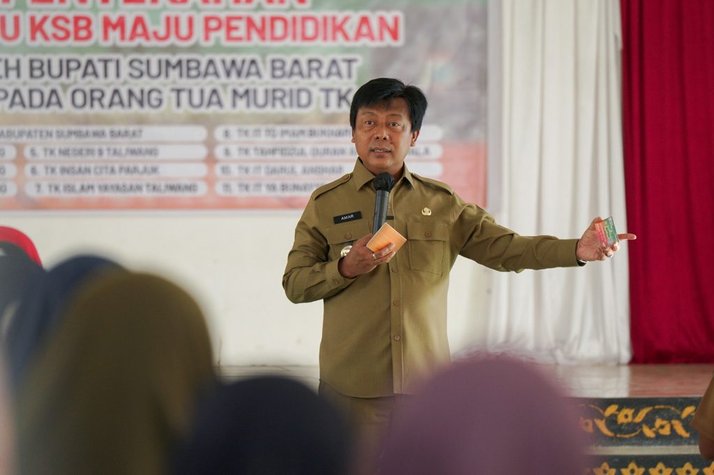 Dalam sambutan, Amar Nurmansyah menegaskan tujuan pembagian kartu dan buku tabungan kepada orang tua dalam rangka implementasi KSB Maju Pendidikan. “Orang tua harus amanah; dana KSB Maju Pendidikan wajib tepat guna untuk kebutuhan anak-anak sekolah,” tegasnya, menekankan kedisiplinan penggunaan bantuan agar manfaat langsung dirasakan peserta didik.