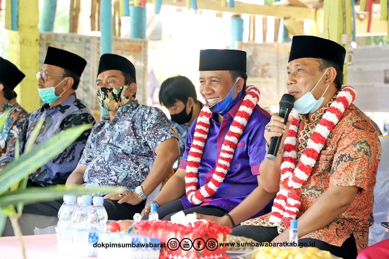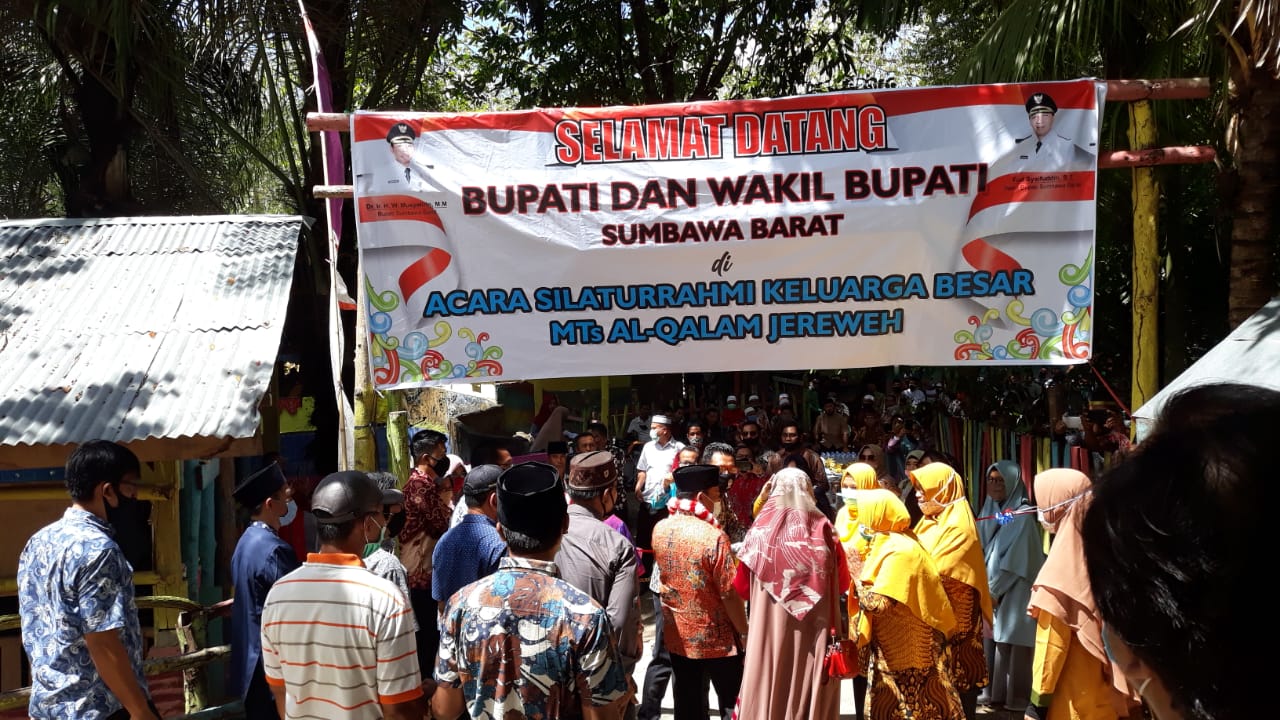 Kamis/20/08/2020. Bupati Sumbawa Barat Dr. Ir. H. W Musyafirin, M.M., bersama Wakil Bupati Sumbawa Barat Fud Syaifuddin, M.M., beserta Sekretaris Daerah dan para Pimpinan Organisasi Perangkat Daerah menghadiri acara Silaturrahmi keluarga besar MTs Al-Qalam bertempat di Dusun Polamata. Tiba dilokasi, Bupati beserta istri mendapatkan pengalungan bunga dari perwakilan keluarga besar MTs Al-Qalam.