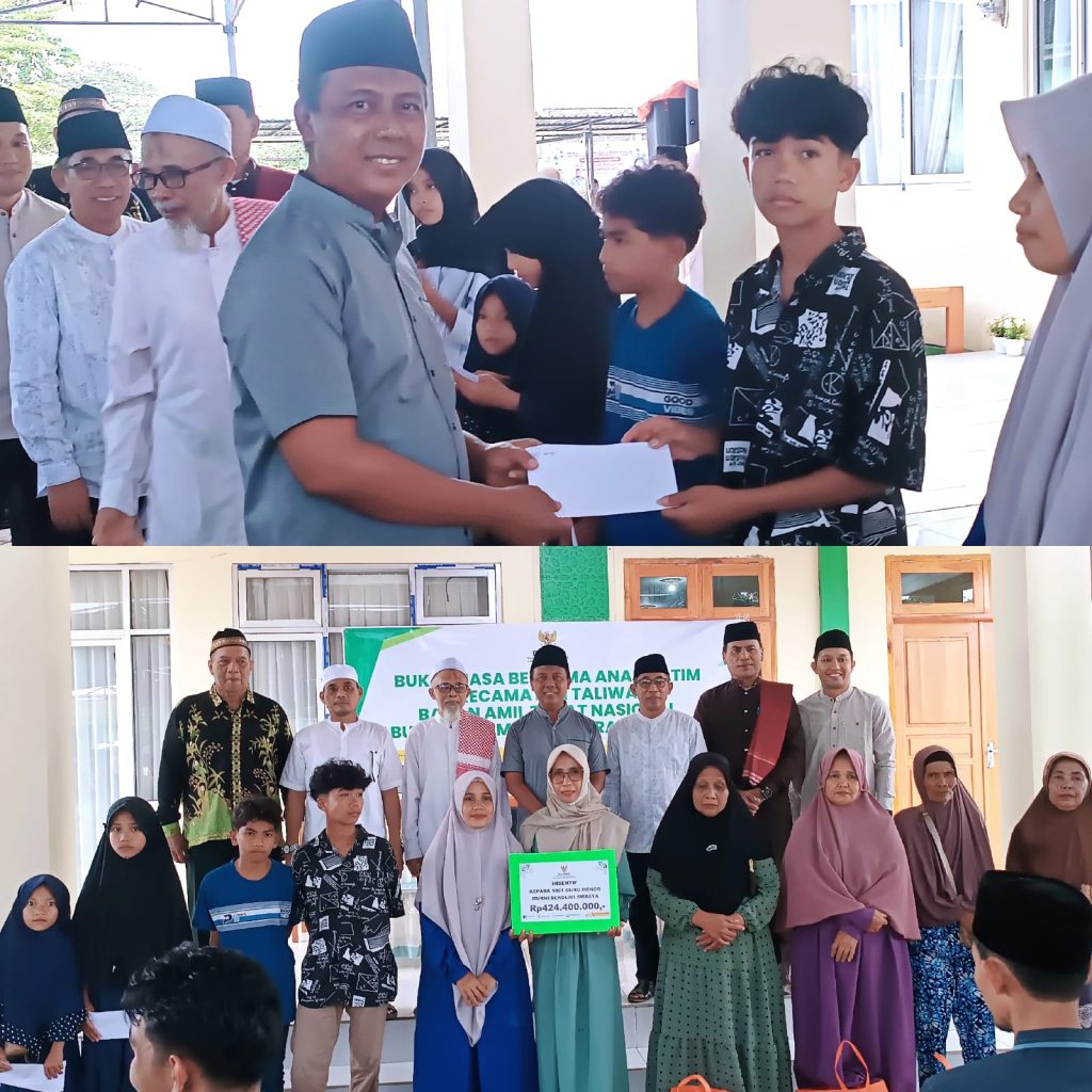 Taliwang – Badan Amil Zakat Nasional (Baznas) KSB memberikan santunan Tunjangan Hari Raya (THR) kepada 200 anak yatim piatu dalam acara buka puasa bersama yang berlangsung di Halaman Kantor Baznas pada Jumat (14/3/2026). Kegiatan yang turut dirangkaikan dengan penyerahan sembako, infaq, penyerahan hadiah lomba video, serta pelaksanaan khitanan massal, menunjukkan komitmen Baznas dalam memperluas jangkauan kebermanfaatan bagi masyarakat.