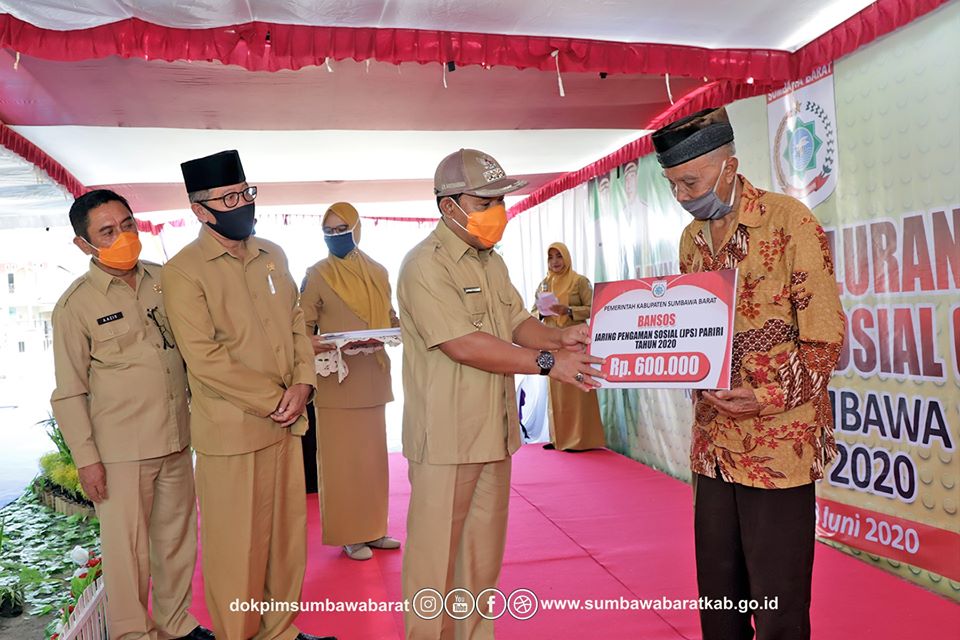 Senin (08/06) pagi bertempat di halaman Kantor Lurah Telaga Bertong, Bupati KSB Dr. Ir. H. W Musyafirin, M.M., didampingi Ibu Hj. Hanipah Musyafirin beserta Jajaran Forkopimda KSB menghadiri kegiatan Launching Penyaluran Bantuan Jaring Pengaman Sosial (JPS) Pariri Kabupaten Sumbawa Barat tahun 2020.