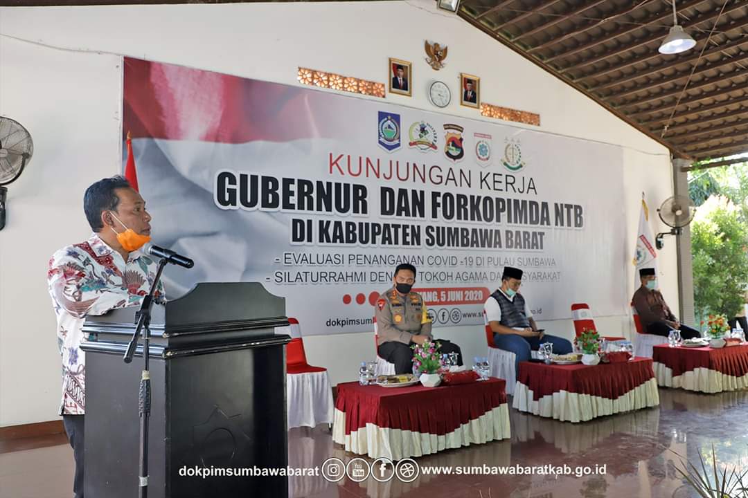 Bupati Sumbawa Barat, Dr. Ir. H. W Musyafirin, M.M menyampaikan usulan kepada Gubernur NTB dan anggota Forkopimda NTB dalam menyikapi wabah Covid-19. Tiga usulan tersebut disampaikan dalam kegiatan silaturrahmi dan kunjungan kerja Gubernur NTB, Dr. Zulkieflimansyah, S.E., M.Sc di Central, kediaman Bupati, Jumat siang (5/06/20). Bersama Gubernur dalam kunjungan kegiatan tersebut adalah Kapolda NTB Irjen. Pol M. Iqbal, M.H, Kajati NTB Nanang Sigit Yulianto, M.H dan sejumlah Asisten dan Kepala OPD Pemerintah Provinsi NTB.