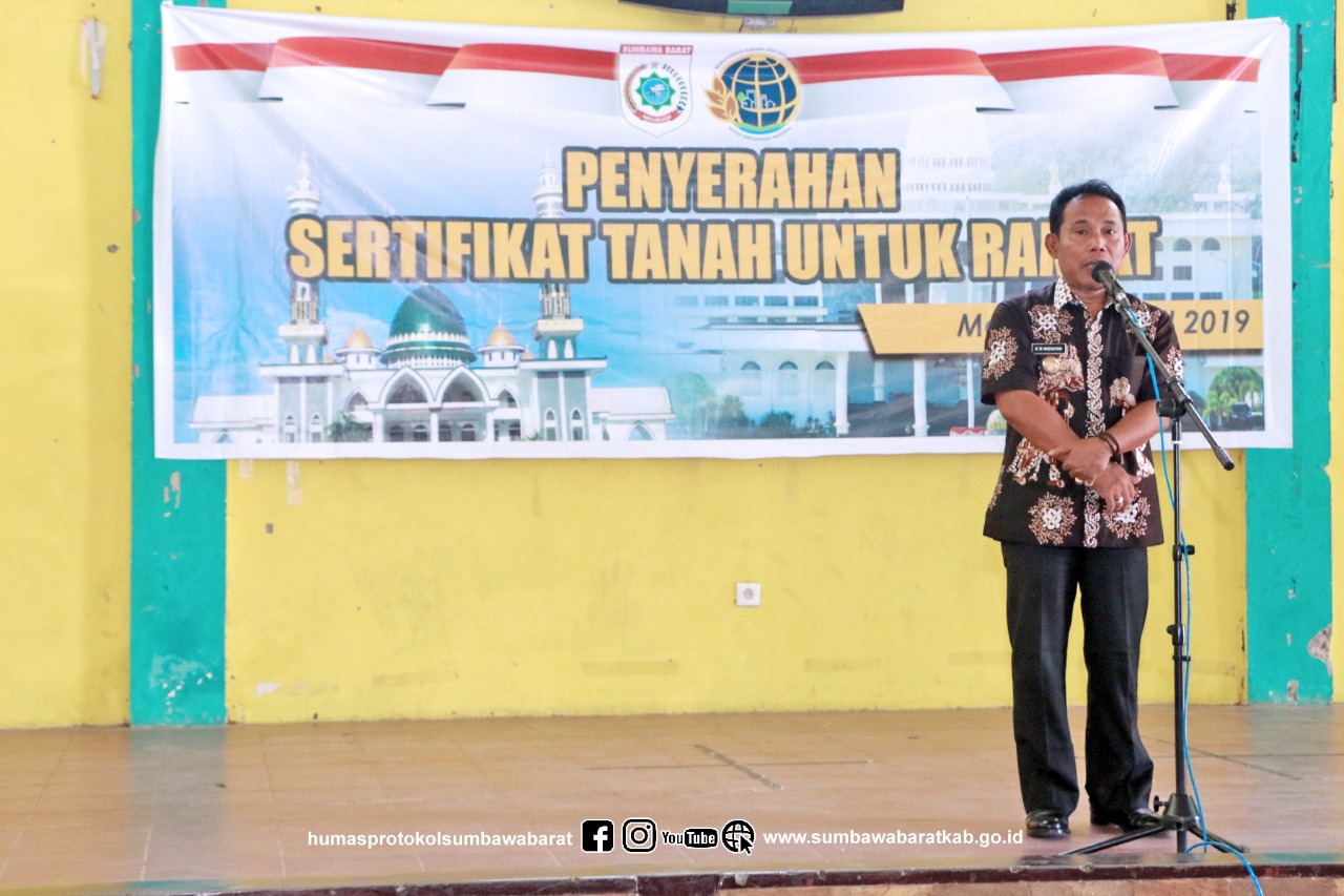 kepala kantor pertanahan Kabupaten Sumbawa Barat dalam laporannya menyampaikan bahwa pada tahun 2019 ini Kantor Pertanahan Kabupaten Sumbawa Barat ditargetkan harus menerbitkan sebanyak 17.500 sertifikat tanah, namun karena keterbatasan Sumber Daya Manusia baru bisa terealisasi sebanyak 14.620 sertifikat, sisanya sedang dalam proses dan sudah pada tahap pemetaan. Dalam acara tersebut dibagikan sebanyak 991 sertifikat yang tersebar di empat desa yaitu Desa Benete sebanyak 654 sertifikat, Desa Bukit Damai 82 sertifikat, Desa Maluk 214 sertifikat, dan Desa Mantun 41 sertifikat. Lebih lanjut Kepala Kantor pertanahan mengharapkan agar masyarakat menyimpan sertifikat tanah dengan baik, jangan sampai hilang karena akan sulit untuk mengurusnya kembali, untuk amannya sebaiknya sertifikat tersebut difotocopy dan diarsipkan dengan baik.