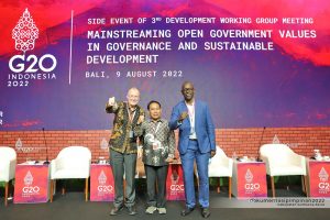 Sumbawa Barat, – Bupati Sumbawa Barat, Dr. Ir. H. W. Musyafirin, MM ikut hadir dalam kegiatan 3rd G20 Development Working Group Meeting atau Pertemuan Kelompok Kerja Pembangunan G20 ke-3. Kegiatan yang dilaksanakan di Bali, Selasa (09/08) tersebut mengambil tema Mainstreaming Open Government Values in Governance and Sustainable Development (mengarusutamakan nilai-nilai pemerintahan terbuka dalam tata kelola dan pembangunan berkelanjutan). 3rd G20 Development Working Group Meeting merupakan rangkaian dari KTT Kepala Negara dan Pemerintahan G20 ke-17 yang akan berlangsung pada November 2022 di Bali. KTT akan menjadi puncak dari proses G20 dan kerja intens yang dilakukan dalam Pertemuan Tingkat Menteri, Kelompok Kerja, dan Kelompok Keterlibatan sepanjang tahun.