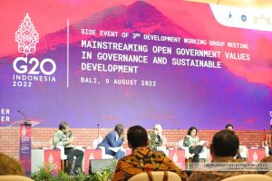 Kegiatan tersebut merupakan sharing pengalaman dan praktek para anggota OGP lokal yang ada di Daerah, tentang bagaimana mempraktekkan pemerintahan terbuka, bagaimana pengklaman-penglaman yang di sharingkan tersebut nantinya bisa digunakan sebagai bagian dari nilai – nilai agenda G 20 termasuk di dalamnya penguatan partisipasi masyarakat. Dibutuhkan adanya kolaborasi antara Pemerintah, Masyarakat dan Dunia usaha dalam rangka pencapaian S.DGes.