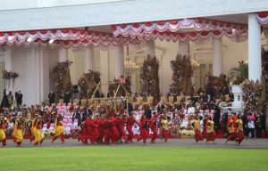 Sumbawa Barat, – Bupati Sumbawa Barat Dr. Ir. H. W. Musyafirin, M.M. berkesempatan mendampingi langsung tim Kesenian yang diberikan kepercayaan oleh Panitia Hari Besar Kemerdekaan RI untuk tampil mengisi acara pada HUT ke-77 RI di Istana Negara. Tim kesenian yang menampilkan seni tari daerah dengan judul “Isong Bale” tersebut diperankan oleh sebanyak 100 seniman yang terdiri dari para pelajar, dan ibu – ibu yang memainkan perannya masing – masing sebagai penari, pemusik, dan penembang lagu.