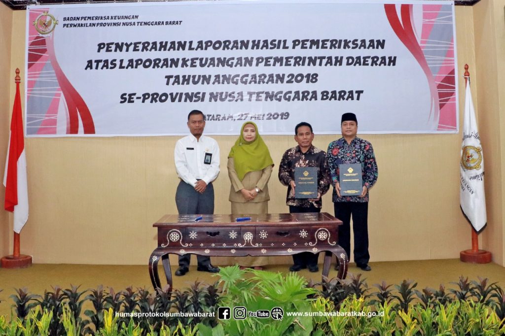 Untuk kelima kalinya Kabupaten Sumbawa Barat (KSB) mendapat opini Wajar Tanpa Pengecualian (WTP) atas Laporan Keuangan Pemerintah Daerah (LKPD) Tahun Anggaran 2018. Bupati Sumbawa Barat, Dr. Ir. H. W Musyafirin, M.M bersama Ketua DPRD KSB M. Nasir, S.T., M.M menerima langsung LHP dari Kepala BPK RI Perwakilan NTB di Aula Gedung BPK RI Perwakilan NTB, Senin pagi (27/05/19). LHP-LKPD dengan opini WTP ini merupakan WTP ketiga di bawah kepemimpinan Bupati Dr. Dr. Ir. H. W Musyafirin, M.M dan Wakil Bupati Fud Syaifuddin, S.T sejak memimpin KSB tahun 2016. Dua WTP sebelumnya didapatkan di masa pemerintahan Dr. KH. Zulkifli Muhadli, M.M dan Mala Rahman.