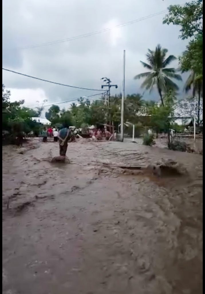 TALIWANG—Pasca banjir bandang di Desa Kertasari, Kecamatan Taliwang, Bupati Sumbawa Barat Dr. Ir. H. W Musyafirin, M.M meninjau lokasi, Kamis siang (22/11/2018).