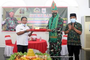 Usai meninjau lokasi TMMD, Danrem dan rombongan menuju Gedung Graha Fitrah. Di sini, Danrem menerima kejutan dari Anggota Forkopimda KSB dan Kepala OPD Pemerintah KSB, yakni acara tasyakuran atas kenaikan pangkat Danrem dari pangkat Kolonel atau tiga melati menjadi jenderal bintang satu di pundaknya. Mengawali tasyakuran, Bupati menyematkan sapu tobo dan selendang untuk Danrem. Danrem pun menyerahkan cindera mata untuk Bupati. Kegiatan dilanjutkan dengan pemotongan tumpeng oleh Danrem. Dalam sambutannya, Danrem sangat mengapresiasi kekompakan dan sinergitas Anggota Forkopimda KSB, termasuk Forkopimda Provinsi dan Kabupaten/Kota lainnya di NTB. Yang utama adalah leadership dari Gubernur dan para Bupati dan Walikota. ‘’Saya apresiasi kedekatan Forkopimda di NTB, patur di jaga dan dicontoh oleh masyarakat dan daerah lain di Indonesia,” kata Danrem.