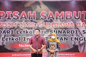 Bupati Sumbawa barat dalam sambutannya, menyampaikan ucapan terimakasih kepada Letkol Czi Sunarti, S.T. yang telah melaksanakan tugas dengan baik di Kabupaten Sumbawa Barat. Banyak program Pemerintah sukses terlaksana berkat kerja keras Dandim Bersama jajarannya. “Banyak penghargaan yang telah diraih oleh KSB berkat bantuan jajaran TNI/Polri. Berkat sinergi dan kerja kolaborasi semua masalah cepat selesai. Yang paling penting adalah, apa yang sudah dilakukan oleh beliau,seperti membangun suasana gotong royong, membina kerukunan warga masyarakat, umat beragama, dan tugas penting lainnya dapat diteruskan dan dipertahankan. Banyak kenangan indah yang kita lewati Bersama, oleh karenanya saya menitipkan lawas