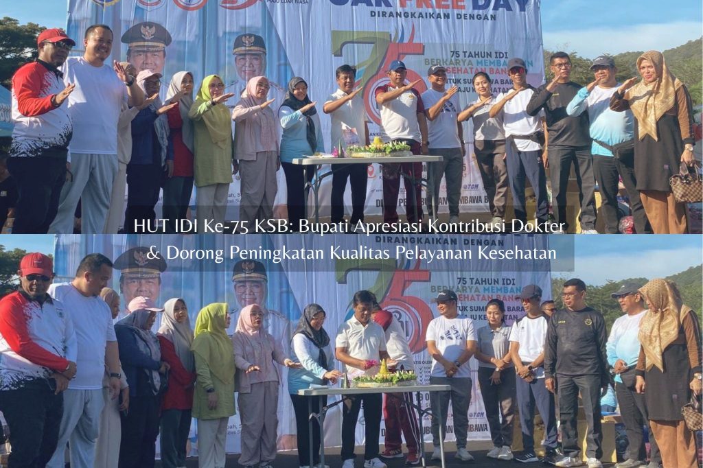 Ketua IDI KSB, dr. Soraya Gigantika, Sp.THT-KL, menyampaikan semangat peringatan 75 tahun IDI. “Di usia yang ke-75 ini, IDI berkomitmen untuk terus berkarya membangun kesehatan bangsa. Kami akan memperkuat peran aktif dokter dalam membangun sistem kesehatan yang lebih baik dan mendorong kesadaran masyarakat akan pentingnya kesehatan secara berkelanjutan,” ujarnya.