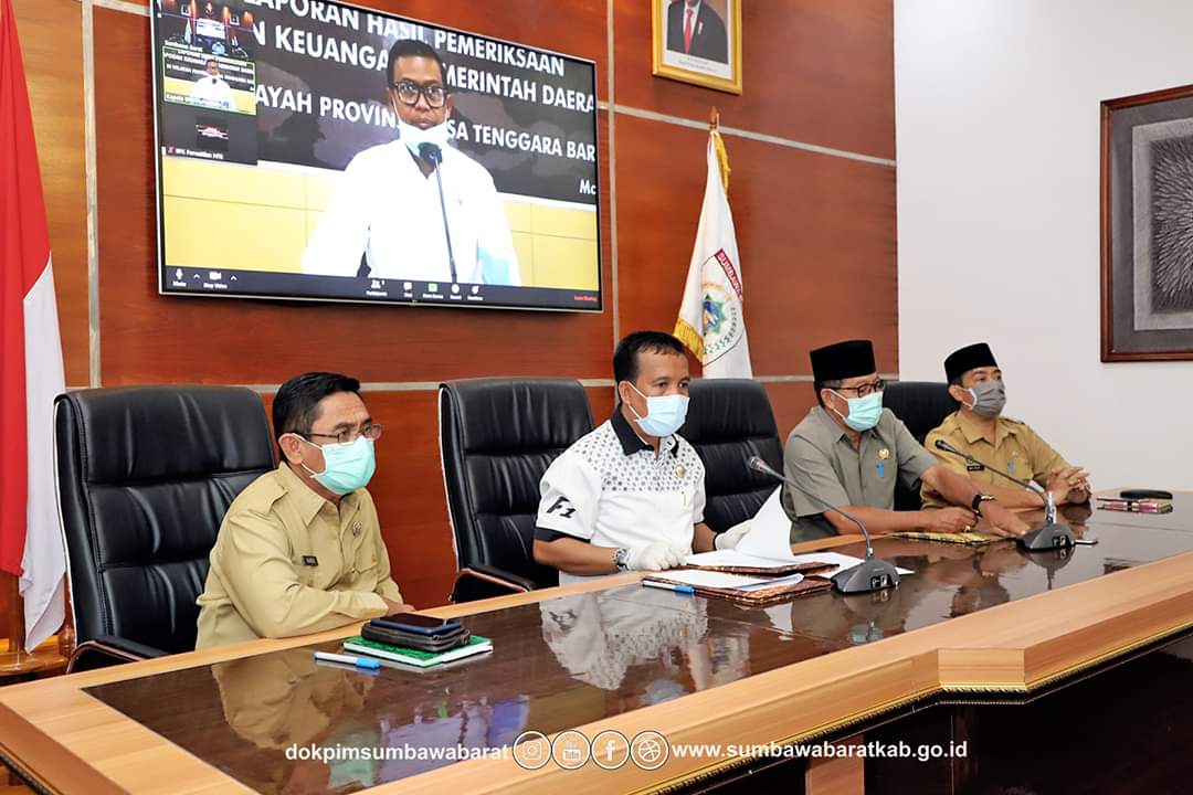 Penyerahan Laporan Hasil Pemeriksaan LKPD Kabupaten Sumbawa Barat TA. 2019 dilakukan secara simbolis oleh Ketua BPK RI Perwakilan NTB, Hery Purwanto, S.E., M.M., Ak., CSFA, CA melalui daring (Email) kepada Wakil Bupati Sumbawa Barat, Fud Syaifuddin, S.T dan Ketua DPRD Kabupaten Sumbawa Barat, Kaharuddin Umar di ruang rapat utama Graha Fitrah, Senin pagi (4/5/2020).