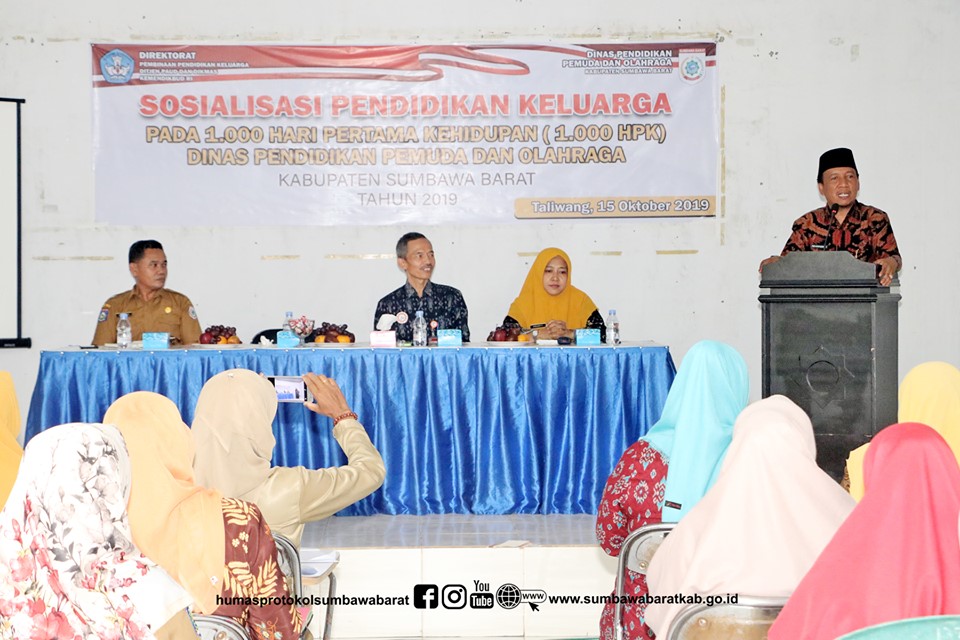 Kepala Bidang Paudni Dinas pendidikan Pemuda dan Olahraga KSB, Suarman, S.Pd., M.Si dalam laporannya mengatakan, sosialisasi dilaksanakan berkat kerjasama Dikpora KSB dengan Direktorat Pembinaan Pendidikan Keluarga Ditjen Pendidikan Anak Usia Dini Kementerian Pendidikan dan Kebudayaan RI. Narasumber sosialisasi adalah Kepala Seksi dari Balai Pengembangan Paudni NTB dan Pengurus PKK KSB. Sosialisasi diberikan agar masyarakat mengatahui pentingnya pendidikan pada 1.000 hari pertama kehidupan dalam perkembangan anak dan menekan stunting.(Rilis 232/Humpro/X/2019)