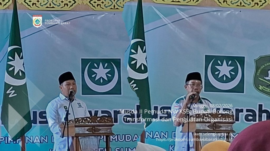 Taliwang – Musyawarah Daerah (Musda) II Pimpinan Daerah Pemuda Nahdlatul Wathan (NW) Kabupaten Sumbawa Barat digelar di Hanipati Resto, pada Minggu (08/02). Acara ini mengusung tema “Bangkit Bergerak dalam Kesatuan Fastabiqul Khairat dalam Iman dan Taqwa.” Dihadiri dan dibuka langsung oleh Bupati Sumbawa Barat H. Amar Nurmansyah, ST., M.Si. Turut hadir, Kepala Kantor Kementerian Agama KSB H. Lalu Suhaili Fathanah, S.Pd., Sekretaris PW Pemuda Nahdlatul Wathan NTB Muhammad Jamaluddin, Ketua MUI Sumbawa Barat Dr. TGH. Burhanuddin, SQH, Kepala Badan Kesbangpol Saifullah, S.IP, perwakilan Kapolres, unsur ormas, serta organisasi kepemudaan di Kabupaten Sumbawa Barat.