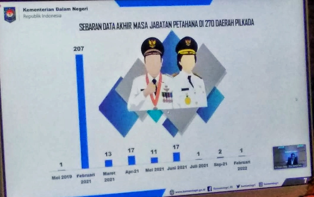 Selain itu, sesuai surat edaran terbaru Dirjen OTDA, untuk mengisi kekosongan jabatan Bupati dan Wakil Bupati, gubernur diperintahkan untuk menunjuk Sekretaris Daerah (Sekda) sebagai Pelaksana Harian (Plh) jika masa jabatan Bupati dan Wakil Bupati sudah habis sebelum dilantik. Plh hanya melaksanakan tugas-tugas yang bersifat rutin tidak boleh mengambil keputusan-keputusan yang bersifat strategis. Pengangkatan Sekda sebagai Plh tidak ada seremonial, pengangkatan hanya dengan radiogram dari gubernur kepada Menteri. Dilakukan dalam 1 ruangan dengan maksimal 25 orang saja untuk penyerahan surat tugas Plh”, jelas Dirjen OTDA. (Prokopim/rilis15/II/2021)