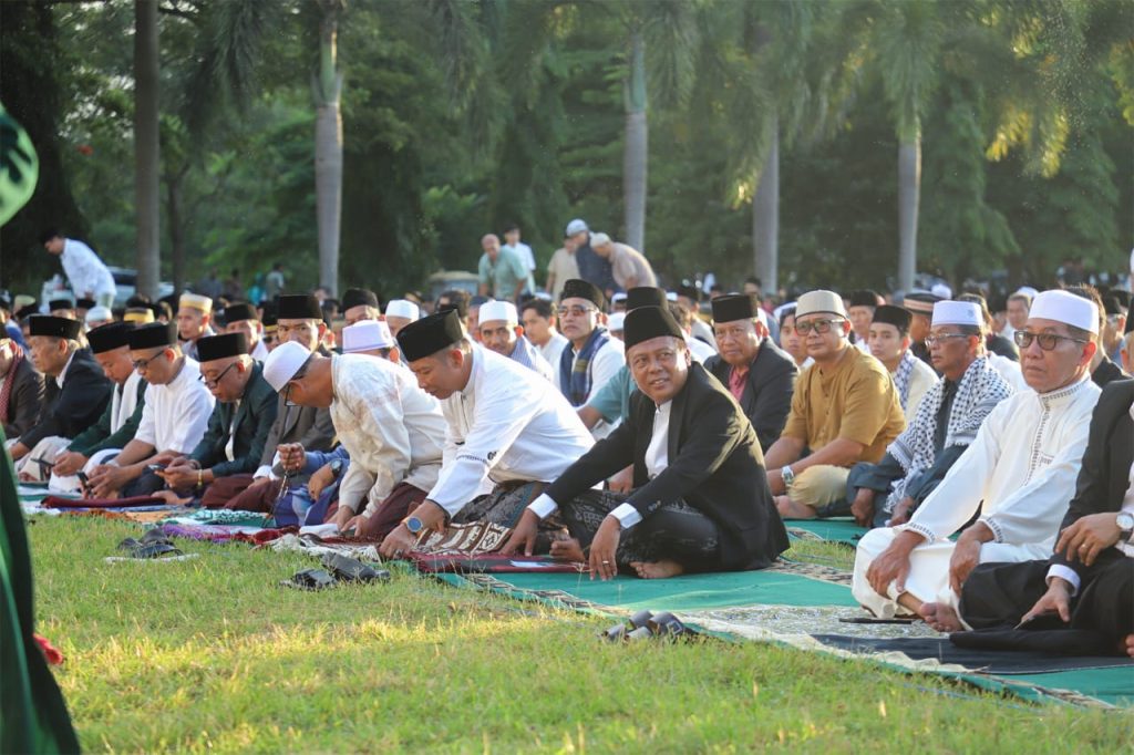 Pelaksanaan salat Idulfitri diselenggarakan di halaman Masjid Agung Darussalaam, KTC, tepat pukul 07.00 WIB. Bertindak sebagai imam adalah Dr. Muhammad Mufti Imam Suyanto, S.Pd., M.P., dan khotib K.H. Syamsul Ismain, Lc.