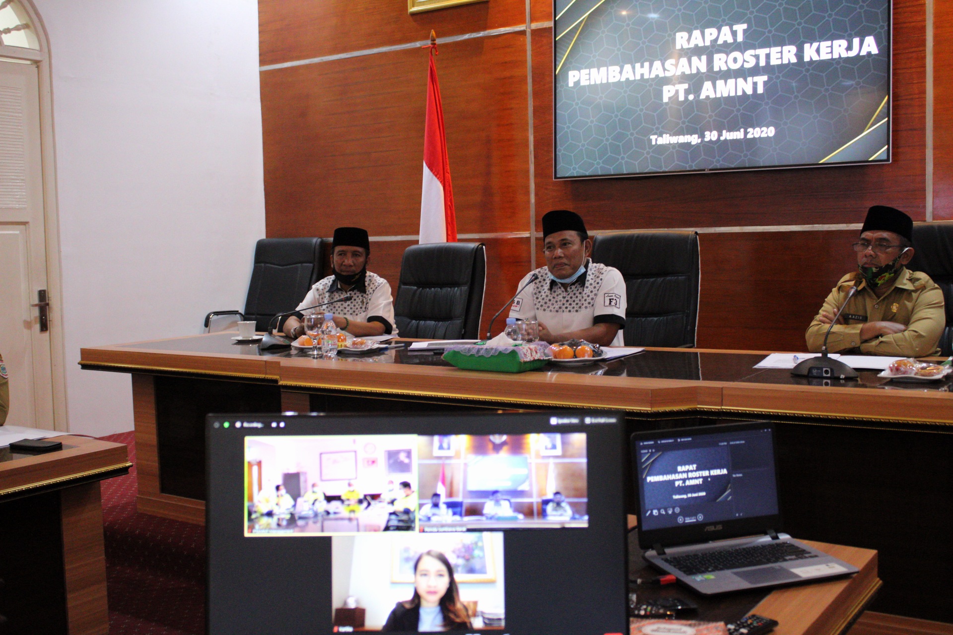 Sumbawa Barat, 1 Juli 2020 – Pemerintah Kabupaten Sumbawa Barat (KSB) dan PT. AMNT menggelar dialog melalui video conference pada hari Selasa 30 Juni 2020, membahas rencana PT. AMNT menerapkan roster kerja 8/4 (8 minggu bekerja, 2 minggu cuti lapangan, dan 2 minggu isolasi mandiri di fasilitas yang telah disediakan perusahaan) selama pandemi COVID-19.