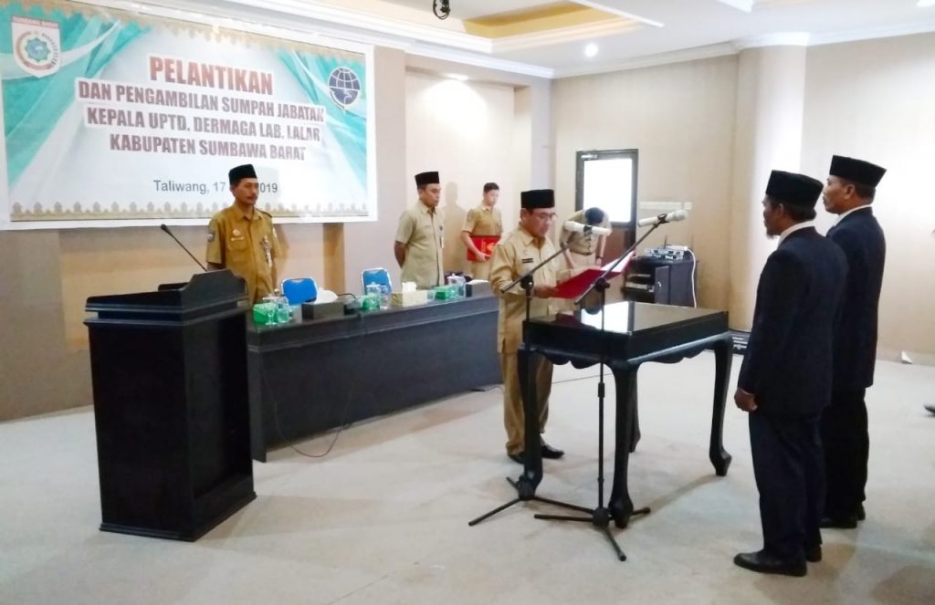 Sekretaris Daerah (Sekda) Kabupaten Sumbawa Barat (KSB), H. Abdul Azis, S.H., M.H melantik dua pelaksana di Dinas Perhubungan KSB menjadi pejabat Unit Pelaksana Teknis Daerah (UPTD) Dermaga Labuhan Lalar. Kedua pejabat tersebut adalah Muhammad Amin, A.Md sebagai Kepala UPTD Dermaga Labuhan Lalar, dan Takdirullah, A.Md sebagai Kepala Sub Bagian Tata Usaha UPTD Dermaga Labuhan Lalar. Pelantikan dan pengambilan sumpah jabatan dilaksanakan di Ruang Sidang Gedung Graha Praja Setda KSB, Senin pagi (17/06/19).