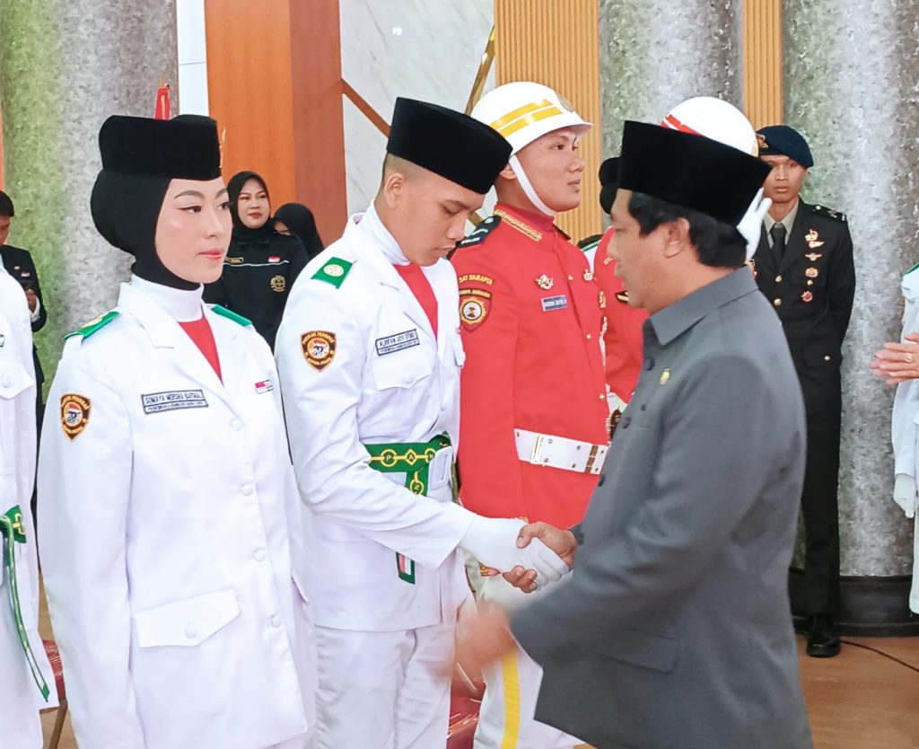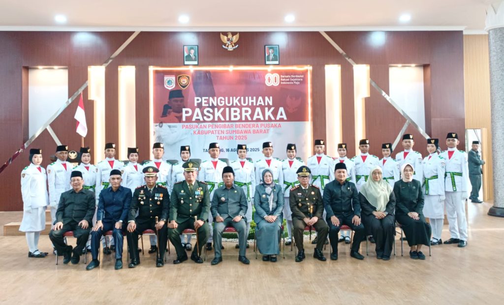 Taliwang – Pengukuhan Pasukan Pengibar Bendera Pusaka (Paskibraka) Kabupaten Sumbawa Barat berlangsung di Gedung Graha Praja Lantai III, Taliwang, pada 16 Agustus 2025. Hadir Bupati H. Amar Nurmansyah, ST., M.Si, Wakil Bupati Hj. Hanipah, S.Pt., M.M.Inov, Sekretaris Daerah drh. Hairul, M.M., jajaran Forkopimda, Perwakilan Dandim 1628, Kapolres Sumbawa Barat, serta Kepala Kesbangpol Saifullah, S.IP yang sekaligus menjadi pembaca ikrar.