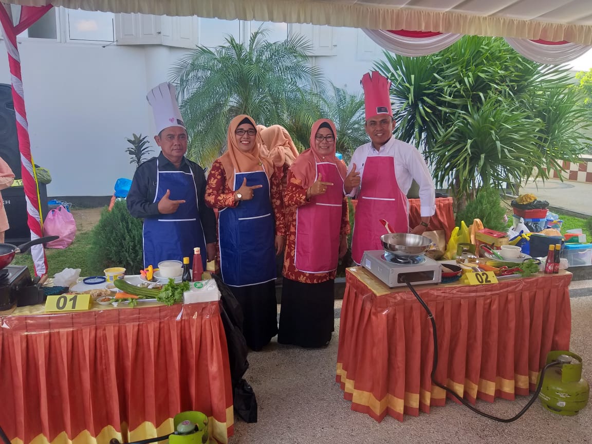 Kasubbag Perundang-undangan Setda Sumbawa Barat, M. Imran Rosiawan, S.H., M.Kn dan istri menunjukkan keluarga yang kompak setelah berhasil menjuarai lomba memasak nasi goreng berpasangan. Lomba digelar Dharma Wanita Persatuan (DWP) KSB di depan Gedung Graha Fitrah, Rabu pagi (27/11/19). Nasi goreng buatan Imran dan istri memikat tim penilai karena disajikan dalam bentuk hati, di-garnish menitmun, selada air, tomat dan telur swar-swir. Kompak dalam pembuatan, rasa yang enak dan sajian yang menarik, nasi goreng buatan bapak dan ibu tiga anak itu pun menjadi juara pertama.