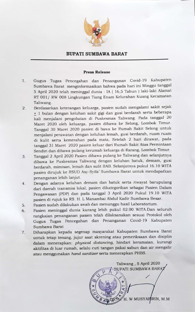 Update: Press rilis KSB penanganan covid19 5 april 2020 by - | Apr 5, 2020 | Berita | 0 comments Submit a Comment Cancel replyYour email address will not be published. Required fields are marked *Comment Name * Email * Website