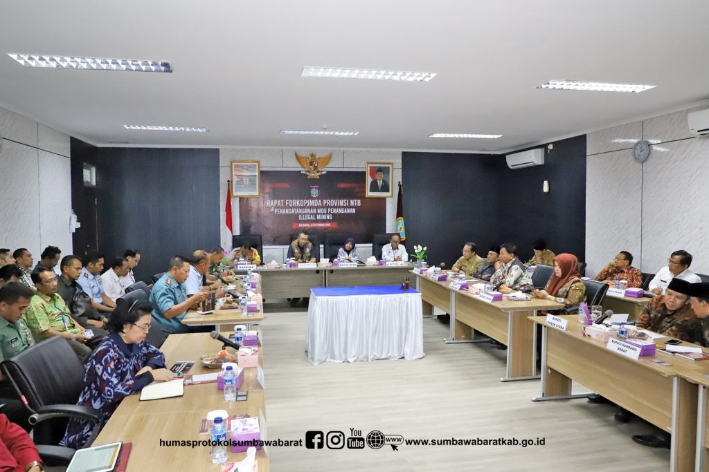 Wakil Bupati Sumbawa Barat, Fud Syaifuddin, S.T menandatangani nota kesepakatan penanganan illegal mining. Penandatanganan dilaksanakan di kantor Badan Intelejen Negara (BIN) Daerah NTB usai menggelar rapat koordinasi pimpinan daerah/Forkopimda NTB bersama Bupati/Walikota se-NTB, Selasa sore (3/09/19). Turut menandatangani kesepakatan bersama, Gubernur NTB, Kapolda, Kepala BIN Daerah NTB, Danrem dan Bupati/Walikota se-NTB lainnya menandatangani nota kesepakatan tersebut. Selain membahas illegal mining, rakor ini juga membahas situasi ketertiban dan keamanan di Provinsi NTB.