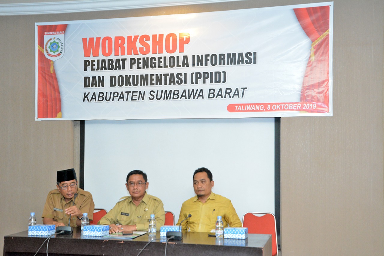 Mewujudkan keterbukaan informasi di lingkungan Pemerintah Kabupaten Sumbawa Barat (KSB), Pejabat Pengelola Informasi Daerah (PPID) KSB pada Bagian Humas dan Protokol Pemeirntah KSB menggelar workshop. Workshop digelar untuk meningkatkan kapasitas PPID Organisasi Perangkat Daerah (OPD) Pemerintah KSB. Kegiatan dibuka Sekretaris Daerah KSB, H. Abdul Azis, S.H., M.H selaku Atasan PPID Utama KSB di Ruang Sidang I Gedung Graha Praja Setda KSB, Selasa pagi (8/10/19). Hadir dalam pembukaan para kepala OPD. Sementara sebagai narasumber adalah Komisioner Komisi Informasi Provinsi NTB, Lalu Ahmad Busyairi, S.Sos dan Kepala Bagian Humas dan Protokol selaku PPID Utama KSB, Ir. Abdul Muis, M.M.